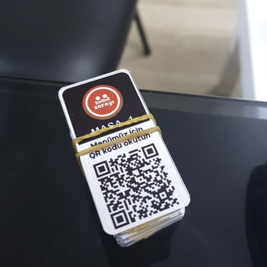 3×6 cm boyutunda metal ve arka yüzeyinde çift taraflı bant bulunan QR menü etiketidir. Cam, mermer ve pürüzsüz yüzeylerde rahatlıkla kullanabilirsiniz.